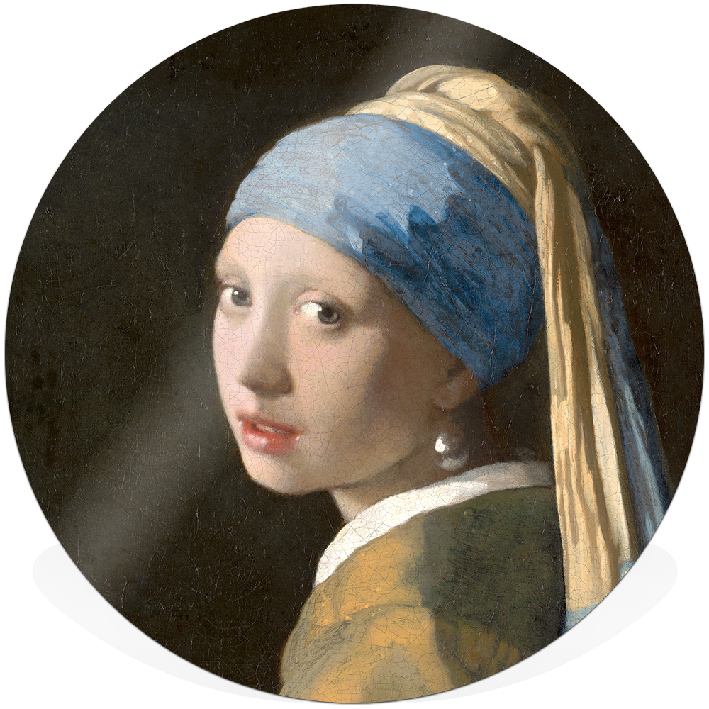 Muurcirkel gemaakt van stevig dibond (aluminium) voorzien van een hoge resolutie print van Meisje met de parel van Johannes Vermeer.