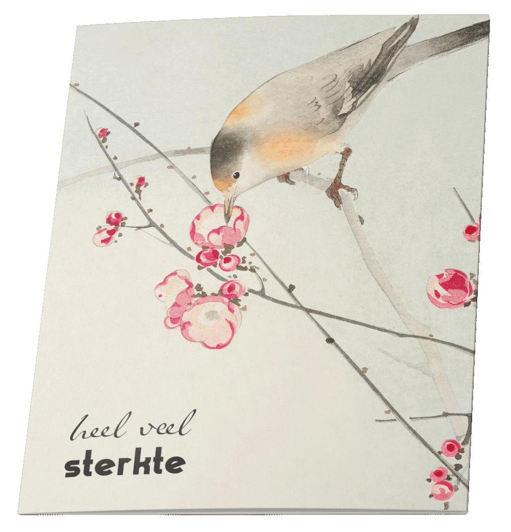 Deze wenskaarten kunnen worden gebruikt om iemand te condoleren of sterkte te wensen. De wenskaarten in deze set bevatten fraaie vogelprenten van de Japanse meester Ohara Koson. De originele prenten zijn gemaakt op basis van de Japanse houtsnijkunst.